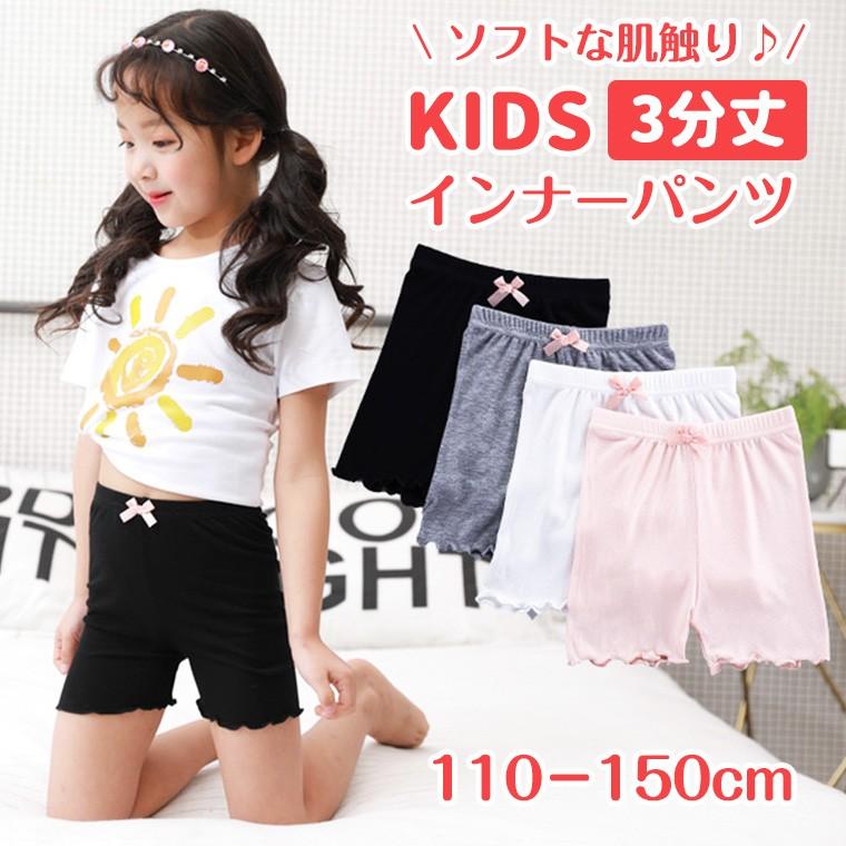 Amazon キッズ オーバーパンツ 女の子 無地 3枚セット リボン付き インナーパンツ アンダーパンツ ガールズ 下着 3分丈 女児 ショート パンツ 半ズボン 短パン パンツ 通販